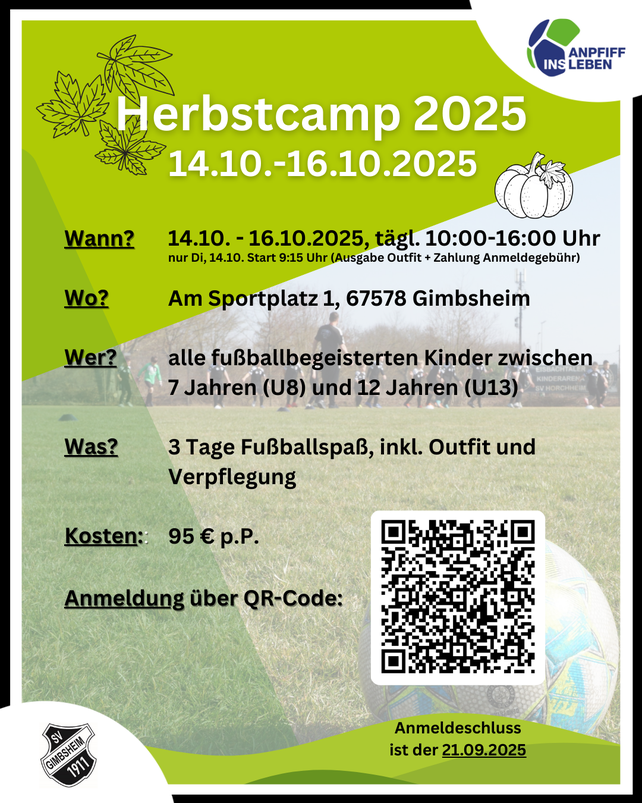 Verpasst nicht unser alljährliches Anpfiff ins Leben Fußballcamp in den Herbstferien!