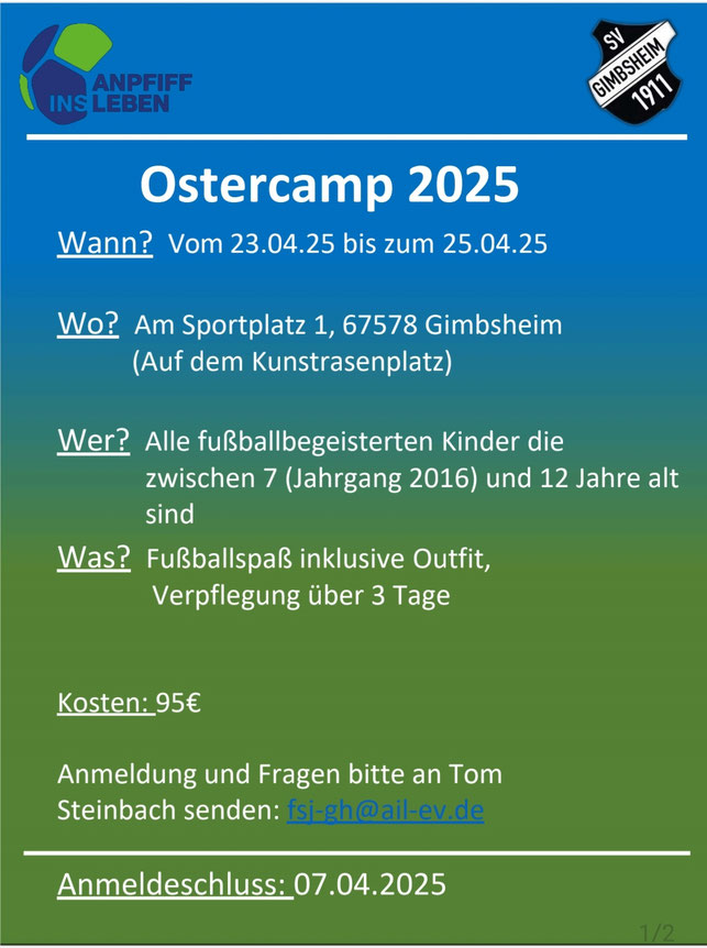 In den Osterferien und Herbstferien bieten wir für jedes Jahr alle fußballbegeisterten Jugendspieler (U8-U13) Feriencamps an, in denen sich alles rund um den Fußball dreht. Die Kids werden an drei Tagen in verschiedenen Bereichen fußballerisch fortgebildet und erhalten dabei Input von verschiedenen Trainern, die das Fußballcamp leiten. Komm auch du vorbei!
